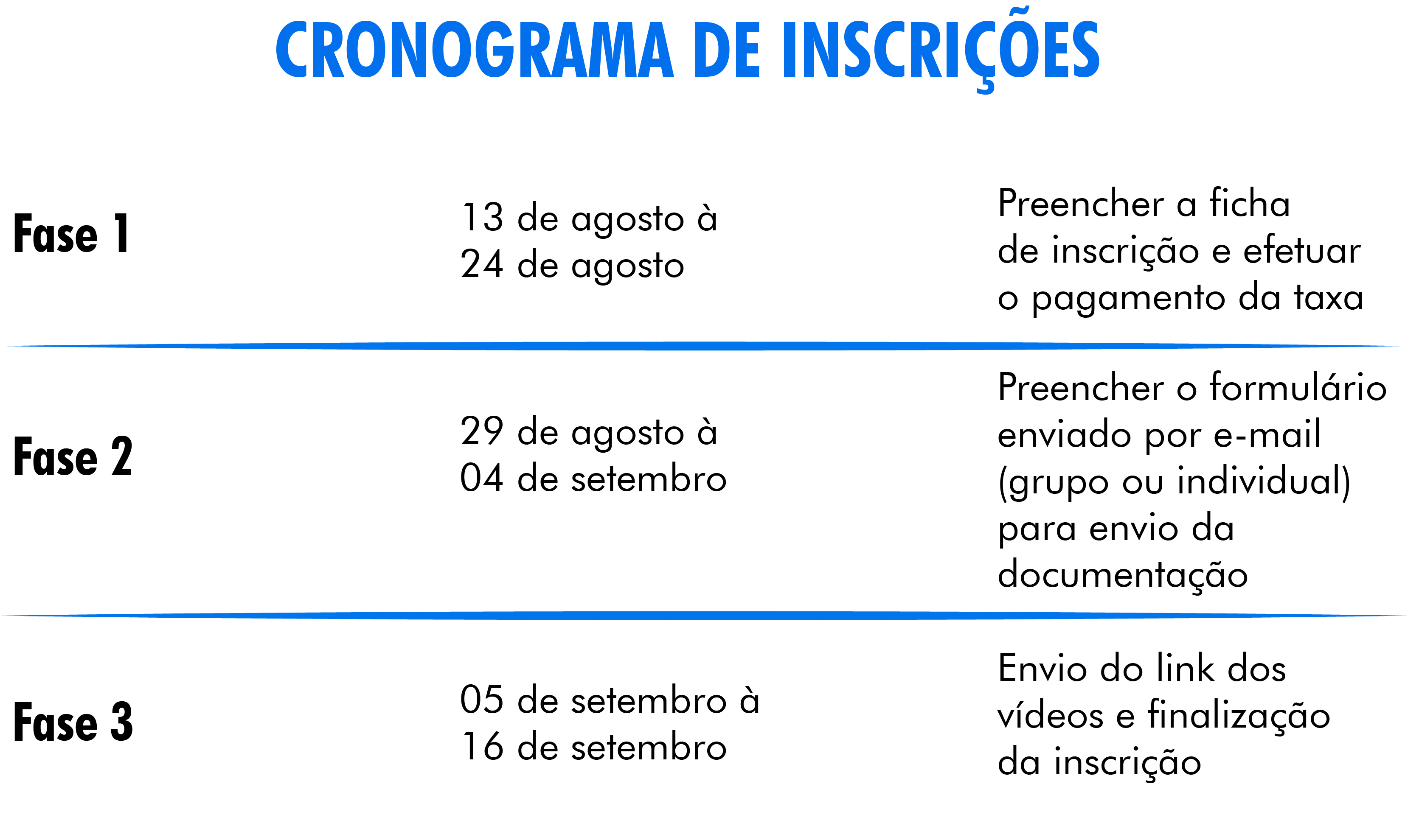 Para eventuais dúvidas, acesse o nosso REGULAMENTO ou entre em contato através das redes sociais ou pelos Whatsapps: RJ (21) 97919-2449  SP (11) 94790-8386.